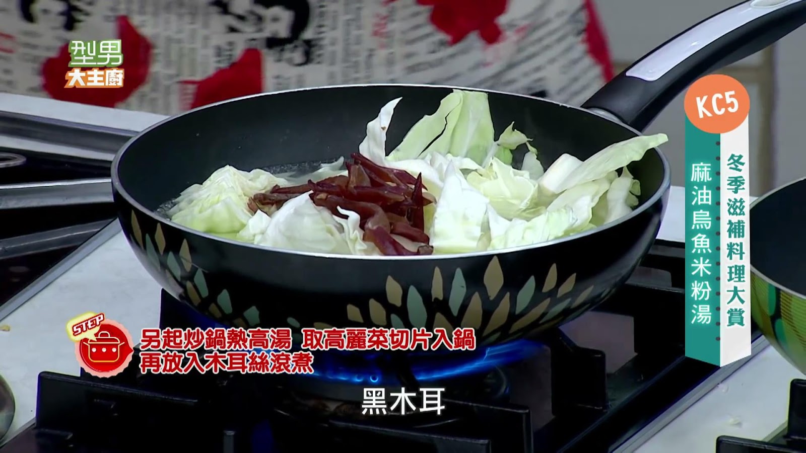 起鍋熱800c.c.高湯,加入高麗菜片滾煮至熟