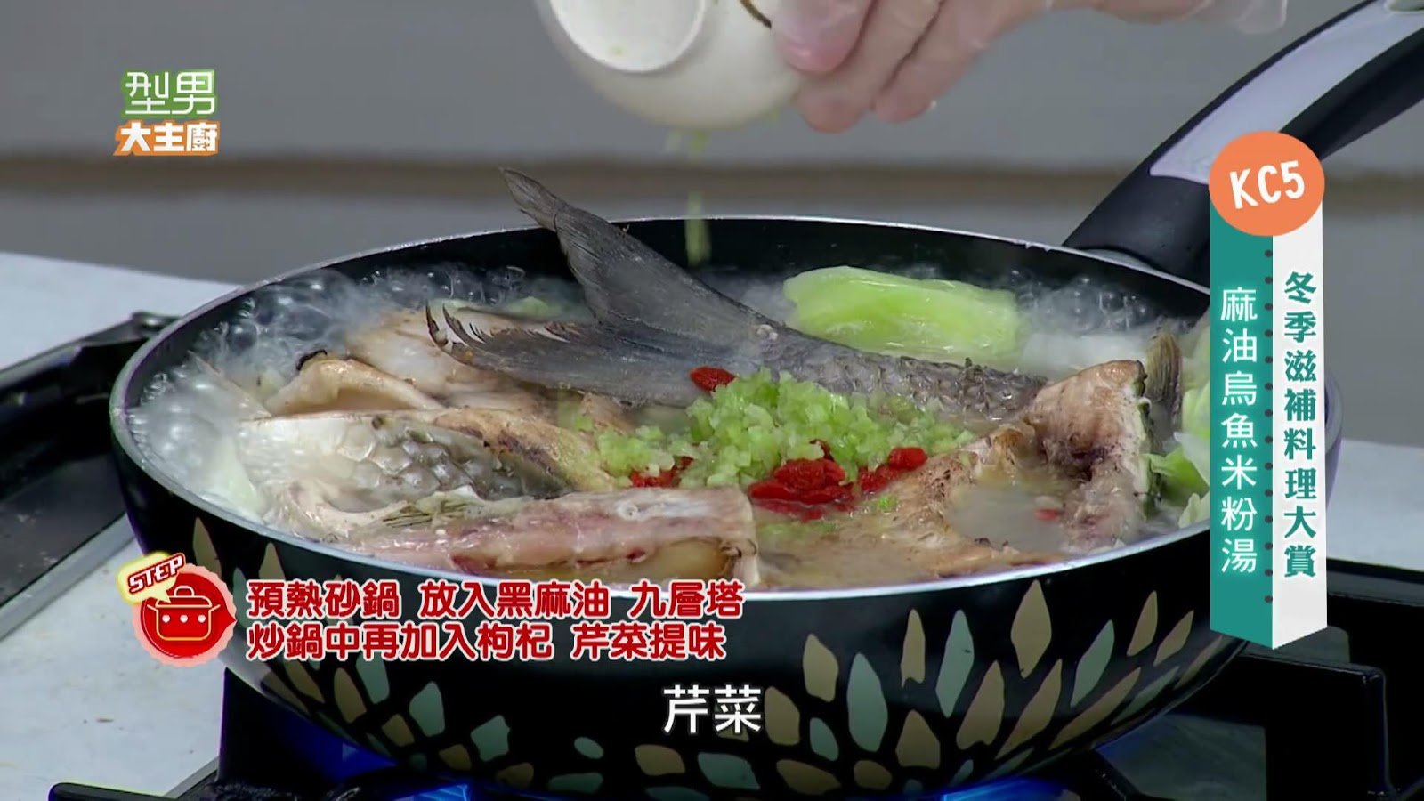 預熱砂鍋,加入1大匙黑麻油、5克九層塔炒香