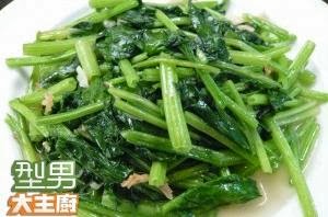 炒菠菜─阿基師(20120229) 作法: 三顆蒜仁切末 一小塊薑切薑絲 50克豬板油切絲備用 300克菠菜切段 起鍋熱香油、沙拉油,爆炒豬板油 加入蒜末、薑絲爆香 加入菠菜梗拌炒 加入菠菜葉拌炒 加入適量熱水拌炒 加入適量塩調味 菠菜炒熟後瀝出多餘菜湯,盛盤 回淋一大匙菜湯 完成